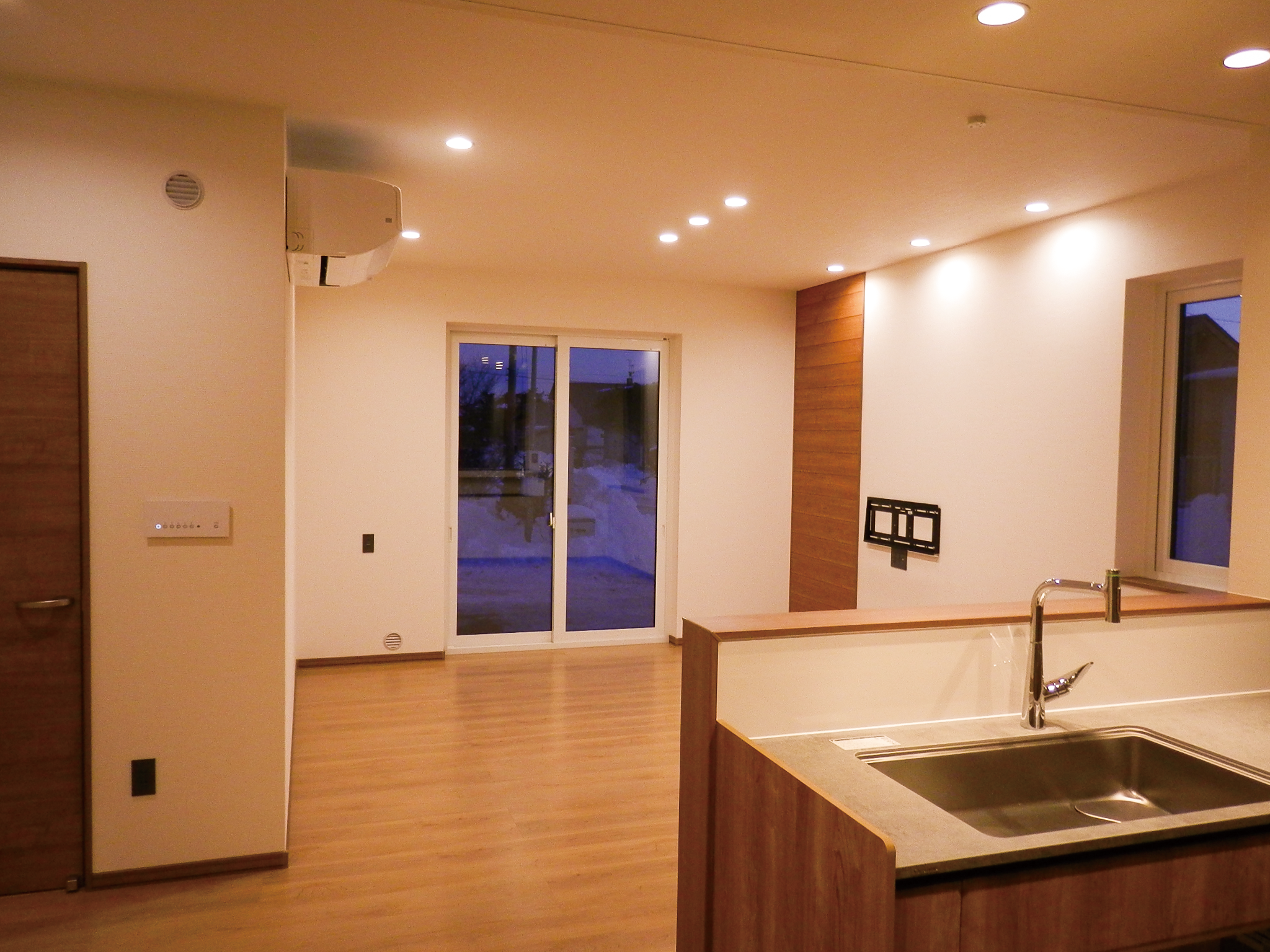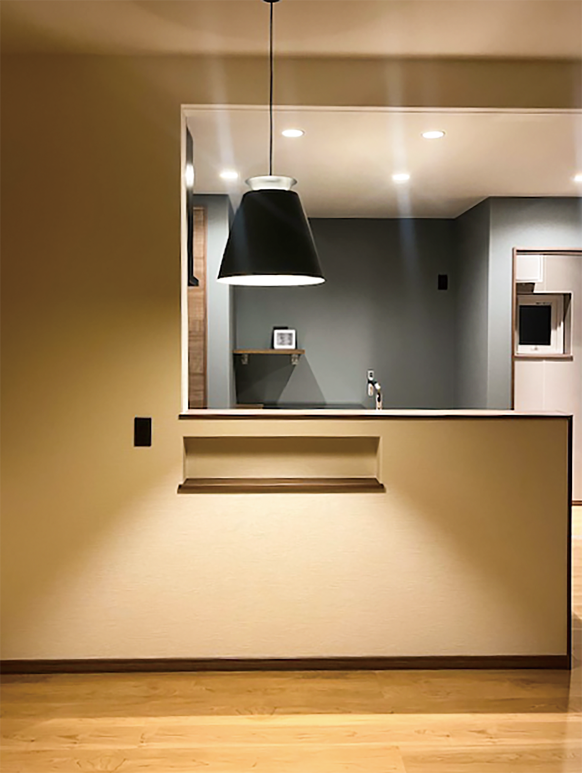自然光と計画照明がバランスよく空間を照らし、昼も夜も快適に。